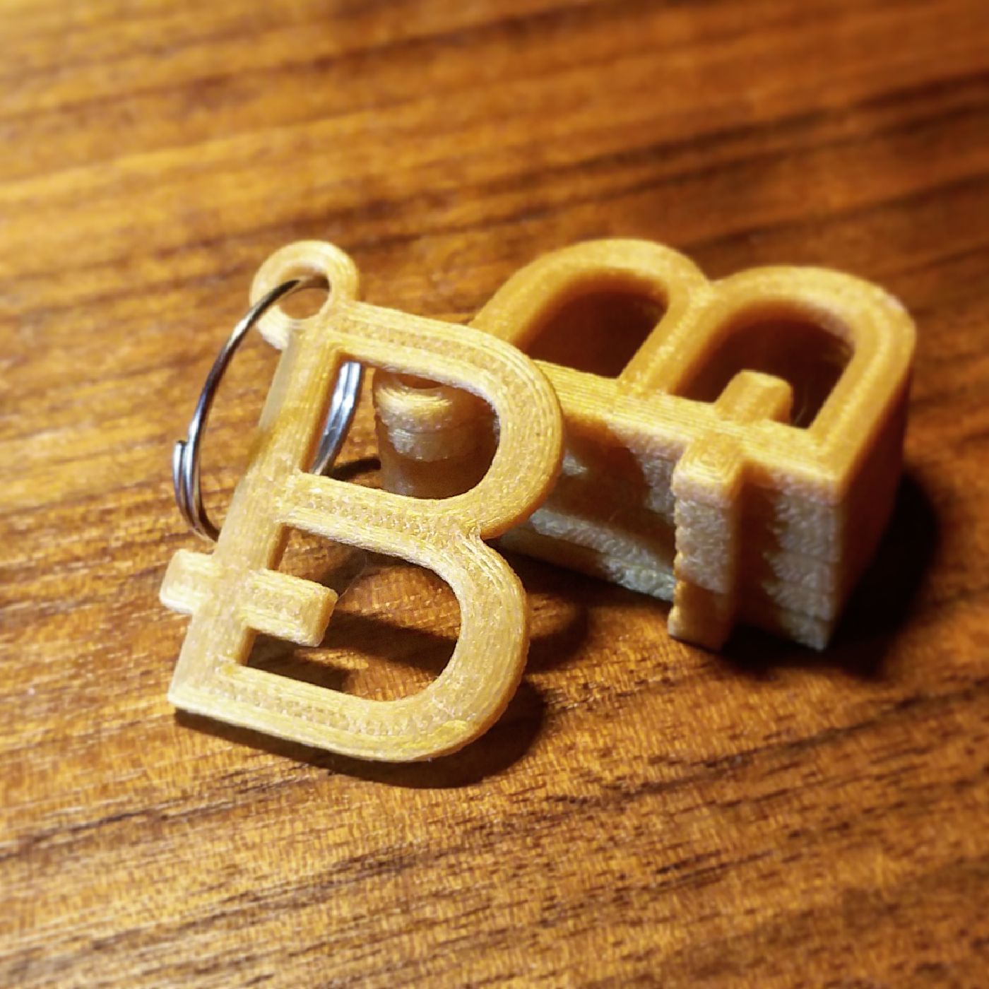 As a Bitcoin enthusiast, I had created a 3D printed Bitcoin keychain available for purchase. As a designer I used the Bitcoin symbol from bitcoinsymbol.org because from a designers standpoint it is easier to write and more aesthetically pleasing.